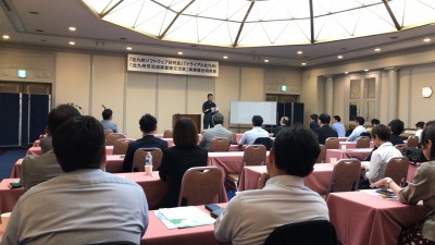 7月は恒例の3団体(北九州ソフトウェア研究会、北九州流通異形種交流会、トライアル北九州)の合同講演会&交流会を行いました。今年の講師はやまびこ塾塾長、大野 勝彦氏です。大野氏は若い頃、トラクターの事故で両腕を失いますが、その絶望を家族の愛とともに乗り越え、義手でイラストと詩を描き続けます。その作品を通して、たくさんの方々に感動を与え続け、遂に2003年、阿蘇に「風の丘 阿蘇 大野勝彦美術館」を設立するに至ります。熊本地震による大被害にも挫けることなく、現在も作品づくりと美術館の運営、講演活動に熱心に取り組まれておられます。