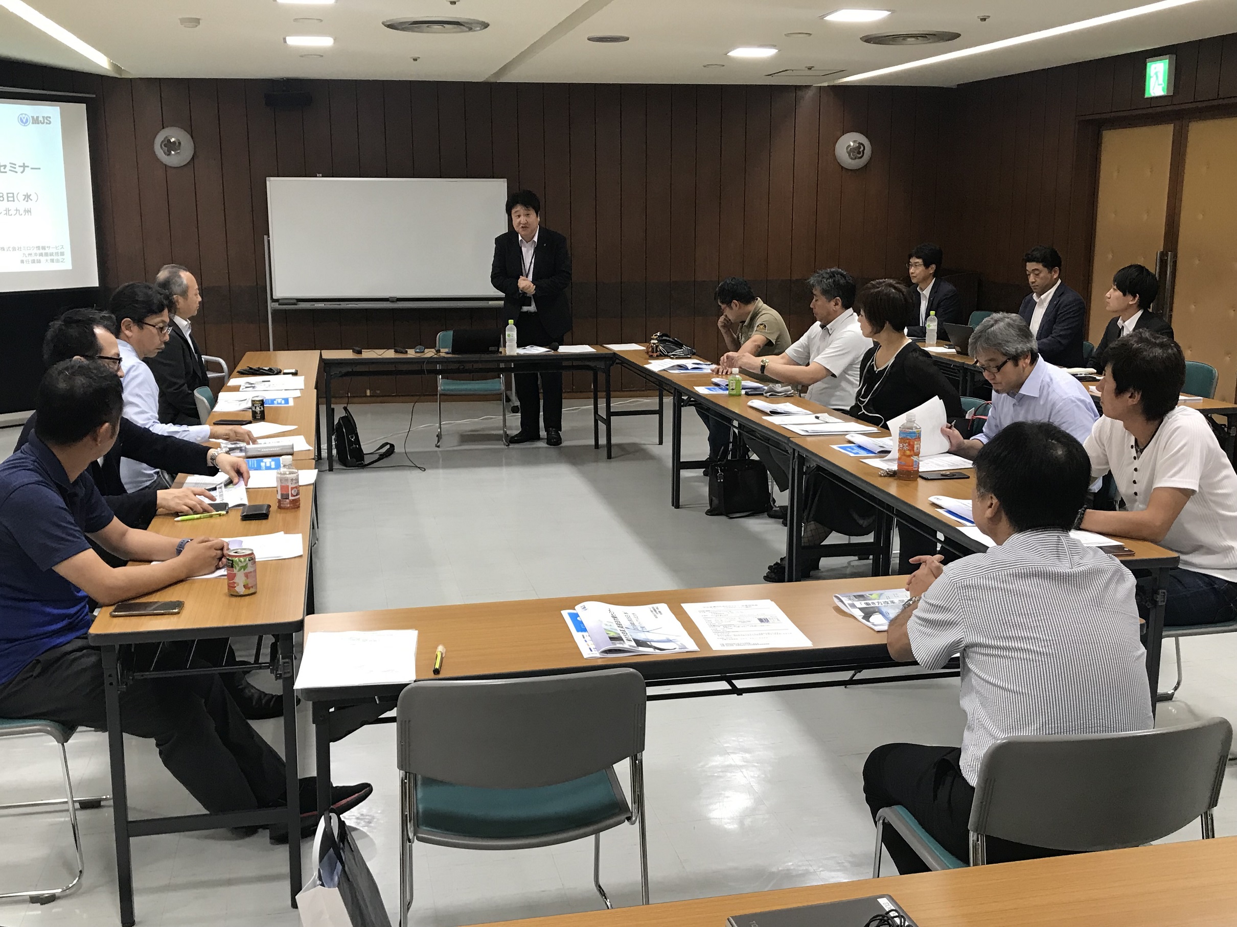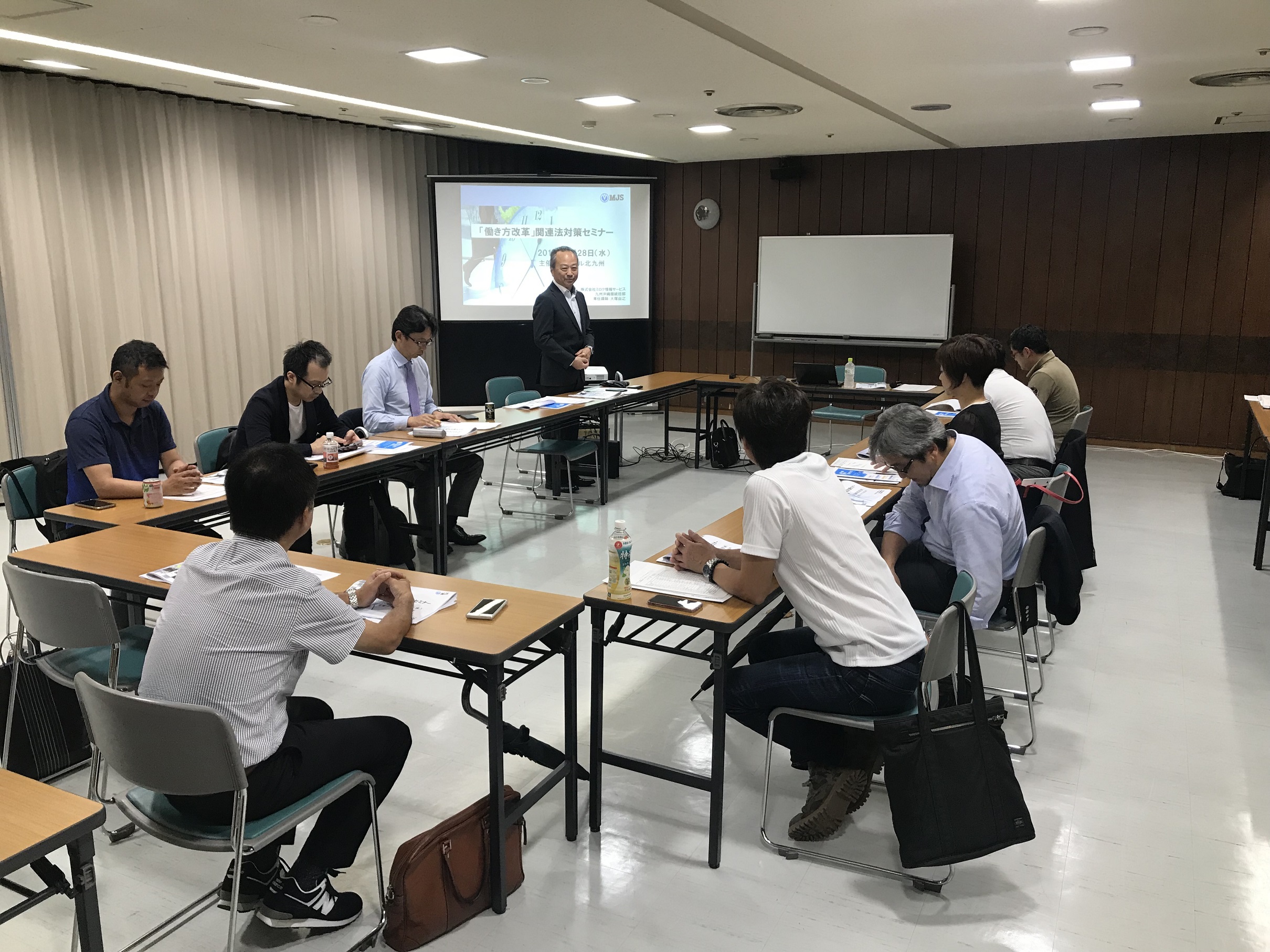 8月例会は「働き方改革関連法案対策」をテーマに開催。講師は㈱ミロク情報サービス九州沖縄圏統括部・専任講師の大塚由之氏。初めに同法案の内容について解説。労働基準監督署の監督指導状況や働き方改革として改善できるシステムの導入ポイント、労働生産性をあげるシステム改善事例、関連する補助金・助成金制度について紹介があり、各社での対応を検討する機会となった。