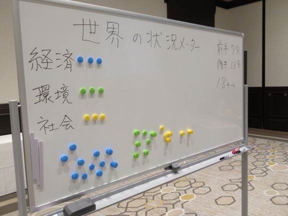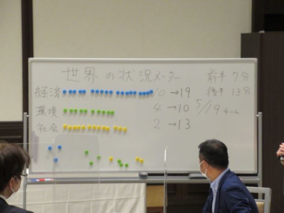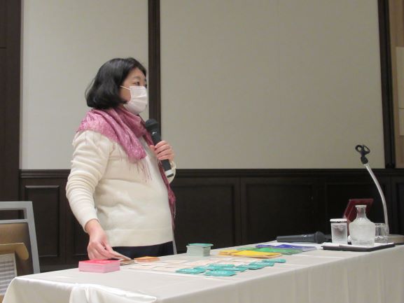 3月例会では、まず初めに、今年度の活動を振り返るとともに、次年度の活動方針について協議を行いました。その後、本山晴子氏(有限会社コ・リード代表取締役)をファシリテーターに迎え、SDGsカードゲームを使っての体験型研修を行いました。このカードゲームはSDGsの本質が学べるように設計されており、ゲームを通して「環境、社会、経済」の3者がいかに密接に連動しているかを実感するとともに、その繋がりの下で、現在、世界に横たわっている種々の課題解決の為に、私達ひとりひとりが今何を行動すべきかについて考えさせられました。なお、今回の例会では、会員の結婚を皆で祝うとともに、新たな会員の入会も決まり、コロナ禍の続く中、素晴らしい例会を開催することができました。