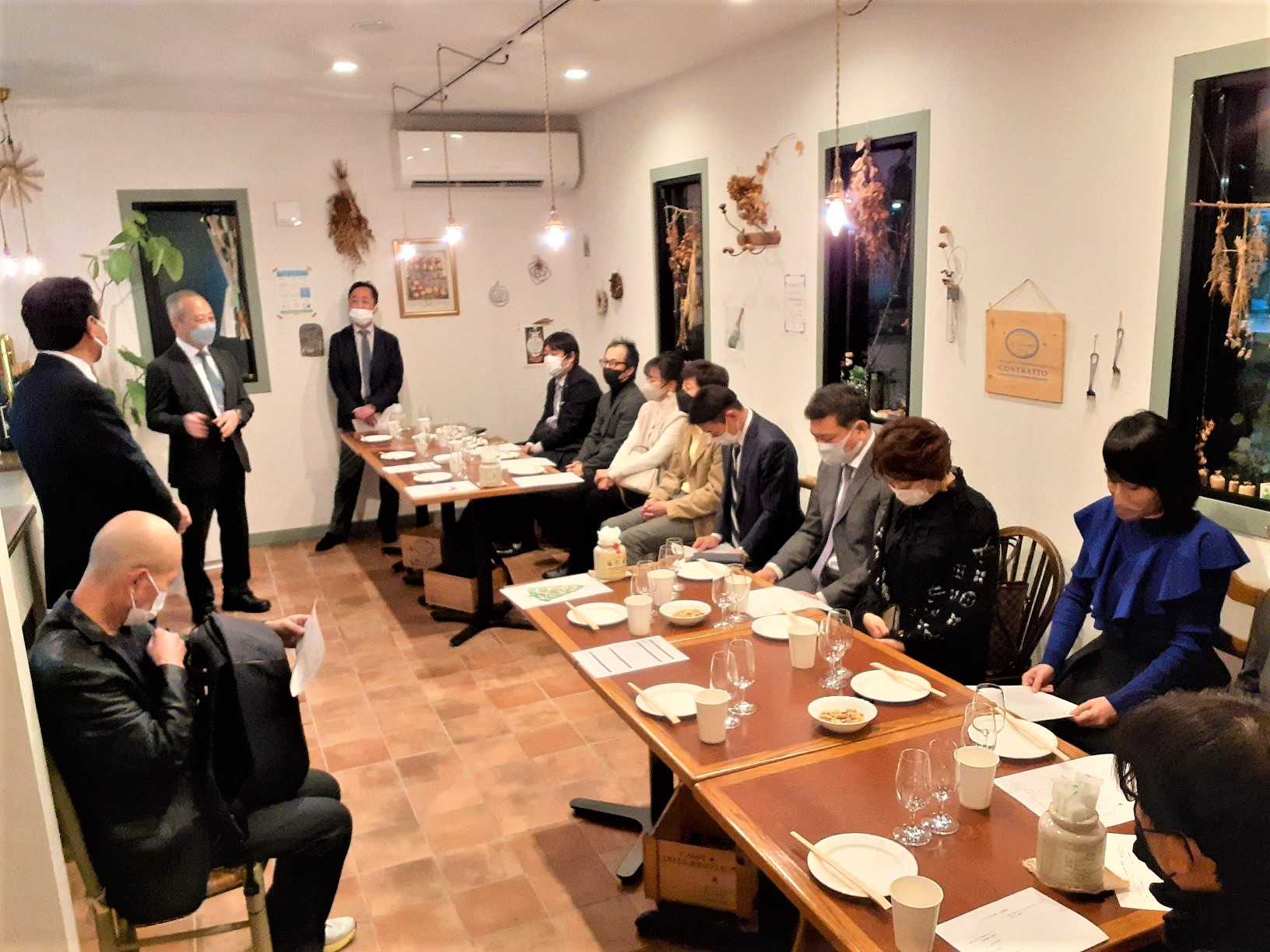 12月例会では会員18人が集い忘年会を行いました。冒頭に会長と副会長から1年を振返っての挨拶がなされ、その後は3テーブルに分かれて、情報交換を兼ねた懇親会へと移行。2022年も昨年に続きコロナに振り回された1年となりましたが、トライアル北九州では随時感染対策をとりながらリアルでの活動を積極的に行い、結果として本年はコロナによる例会等の中止は1回のみに留まらせることができました。この1年で会員もさらに増員し、来年2023年のトライアル北九州もますますと盛り上がりそうです。