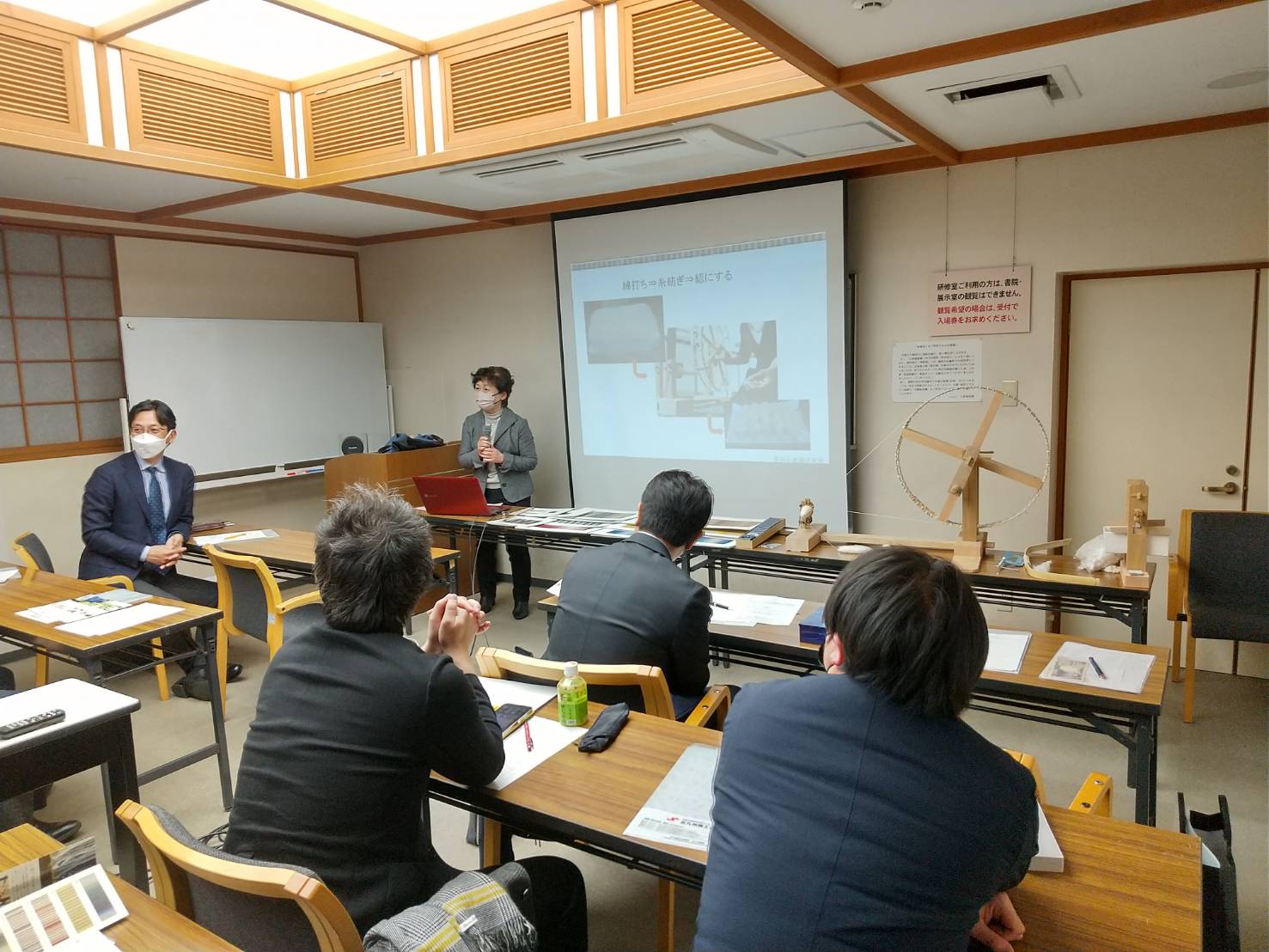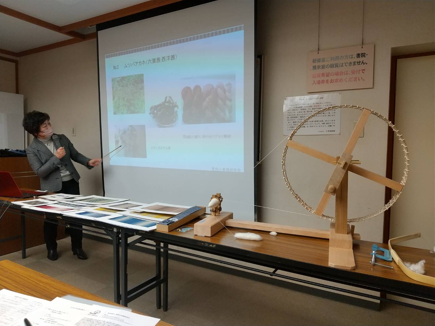 1月例会は、小倉城庭園の会議室をお借りし、豊前小倉織研究会代表の大和恵子様を講師としてお招きしました。講演を通して、小倉織の歴史とその作り方や特徴そしてその文化を未来に伝承していく為の取組みなど、小倉織について幅広く学ぶことができました。
