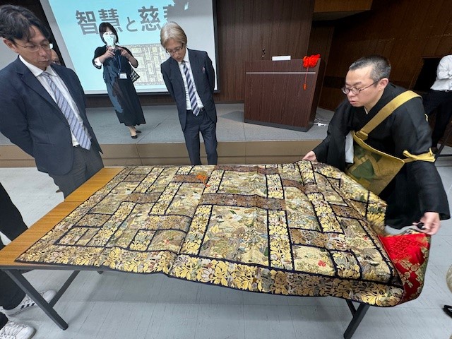 お寺の宝ともいわれる「法衣」までお持ち頂き、紋様の意味のご説明から実際に触らせて頂く体験もさせて頂きました。直接仕事には関係しないような事ですが、日々の生活に密着し、実は大きく関わっていることを実感しました。 懇親会は、しゃぶ禅にて実施させて頂き、楽しくワイワイとおいしい料理とお酒を頂きました。
