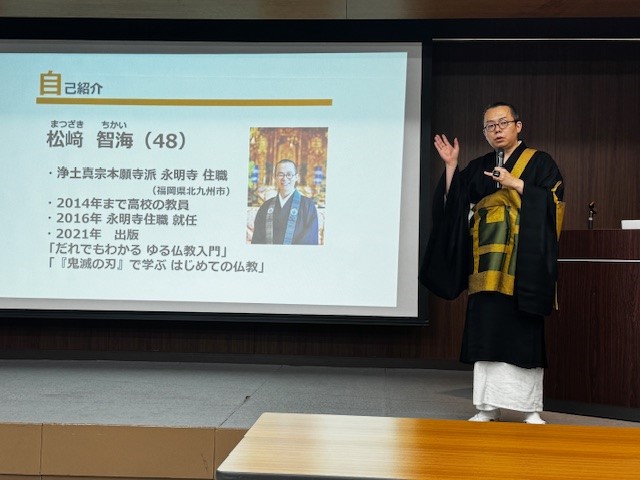 10月例会は、八幡東区の永明寺のご住職である松崎智海さまをお招きし「仏教の教え」について、ご自身の経験、思考を交えながら分かりやすく説教いただきました。